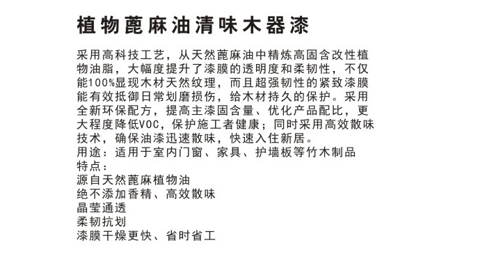 植物蓖麻油清味木器漆